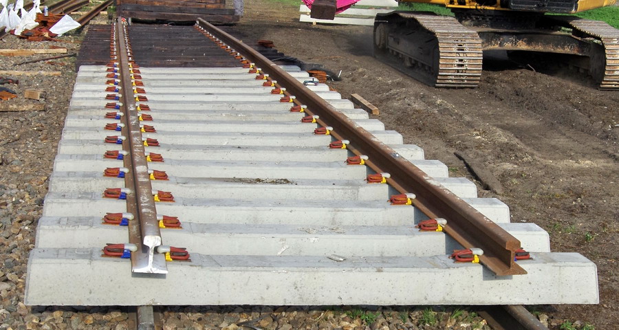 béton monoblocs et des rails de 46 Kg avec des traverses en bois