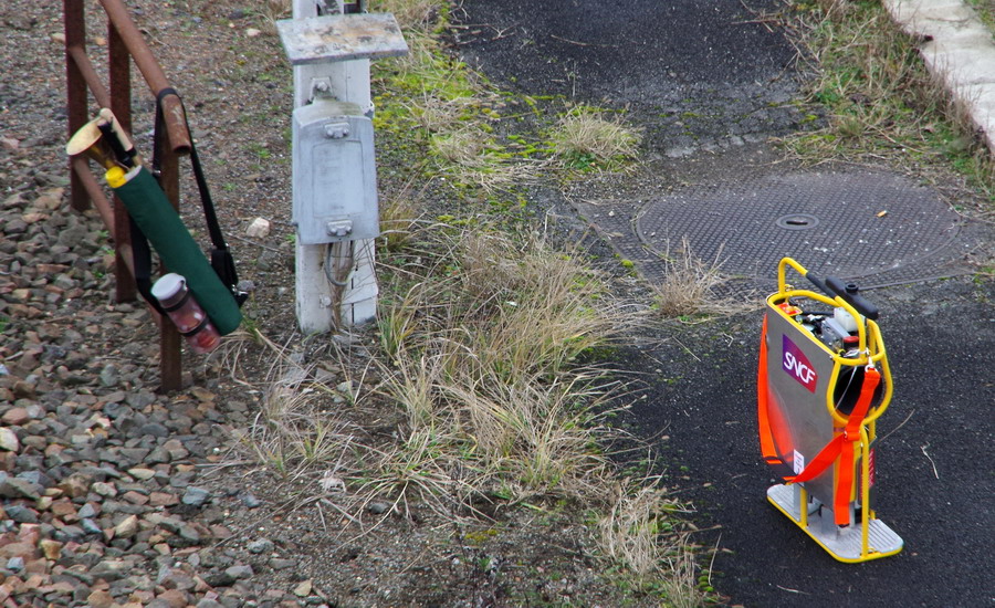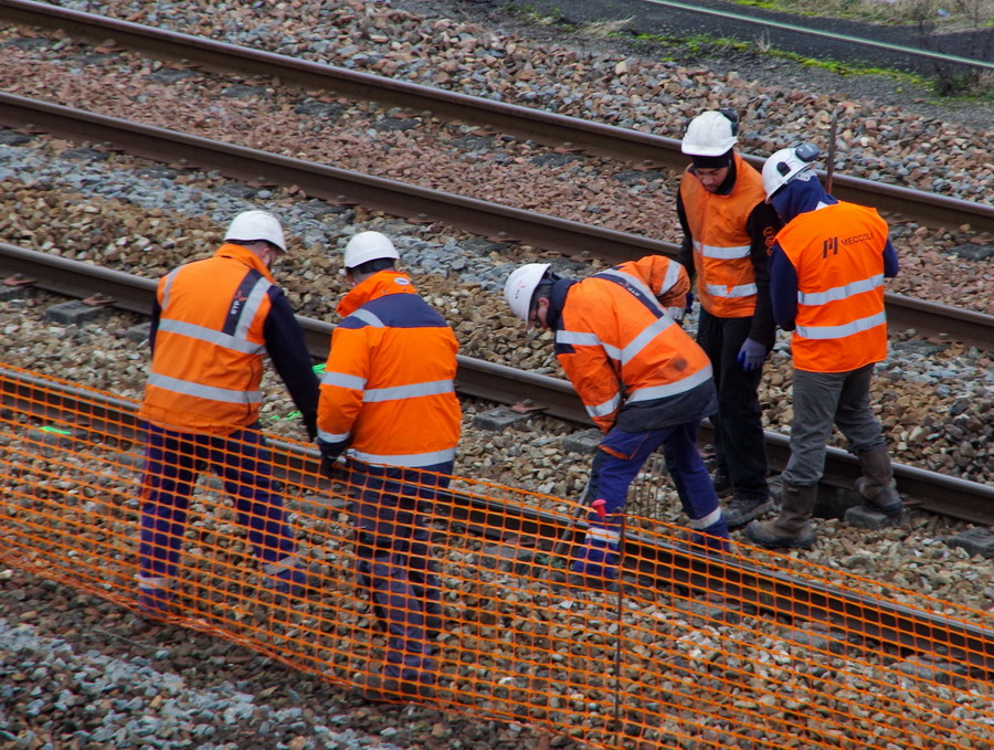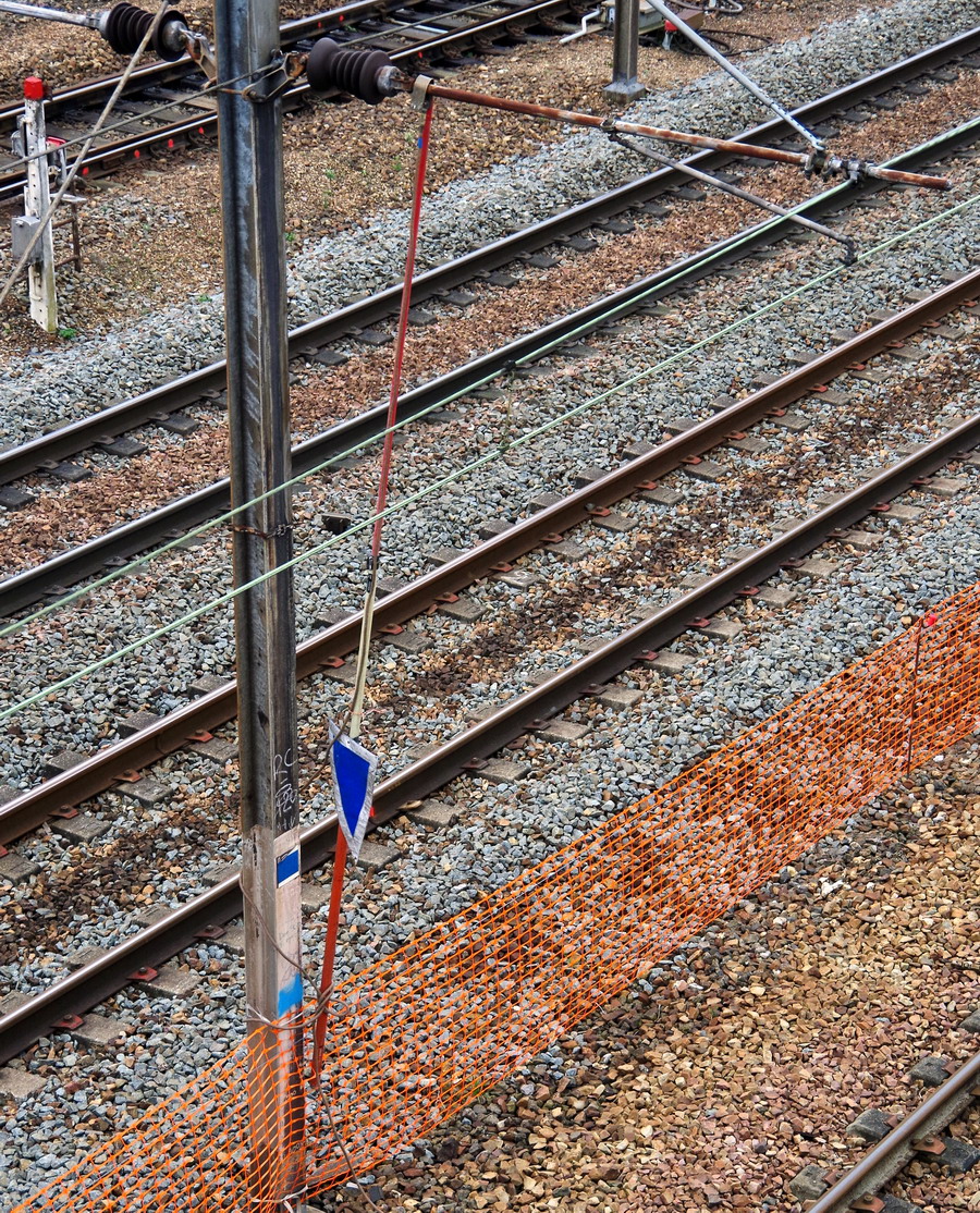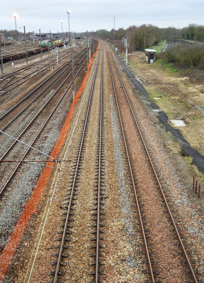 avec la clôture en PVC orange pour la protection entre la voie 2 pour Bussigny et la voie 2 pour Amiens
