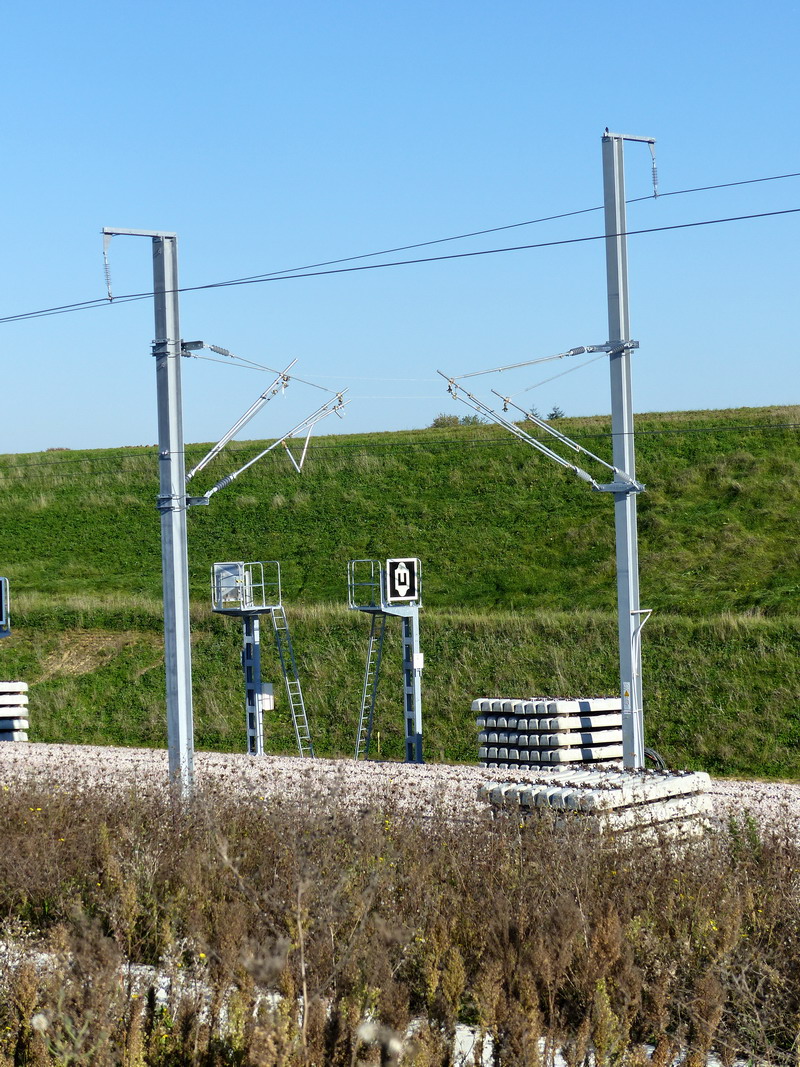 de l'autre côté des voies et l'indication sur le poteau caténaire