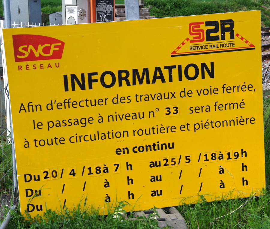 avec les informations de S2R (Service Rail Route) pour la fermeture du PN n°33 entre le 20-04 à 7h00 au 25-05-2018 à 19h00