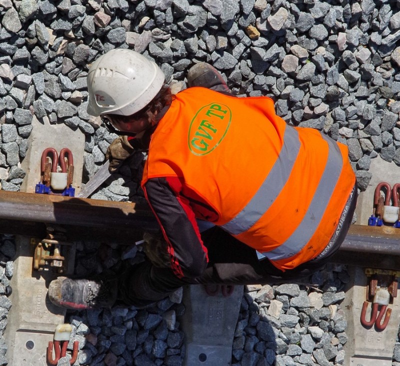 que celle-ci se décale au levage du rail, cela se réalise avec une lame que l'opérateur glisse entre la semelle et la base du rail qui a été préalablement levé.