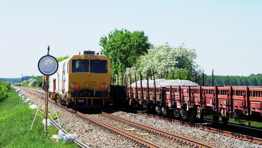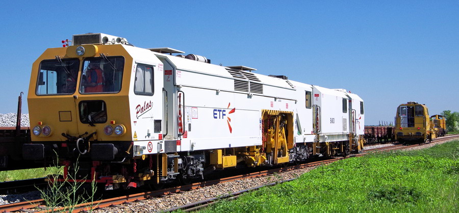 avec la Bourreuse de ligne B45 Palas Matisa n°4519 de 2005 - 99 87 9 122 501-9 ETF pour du bourrage
