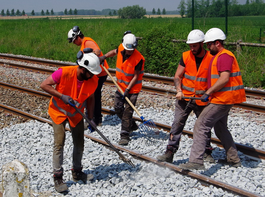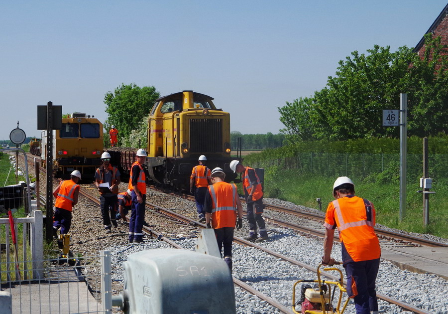 Suite des travaux à Jussy (02) le mardi 08 mai 2018 au niveau de la jonction des LRS et des anciennes rails avec le passage d'une