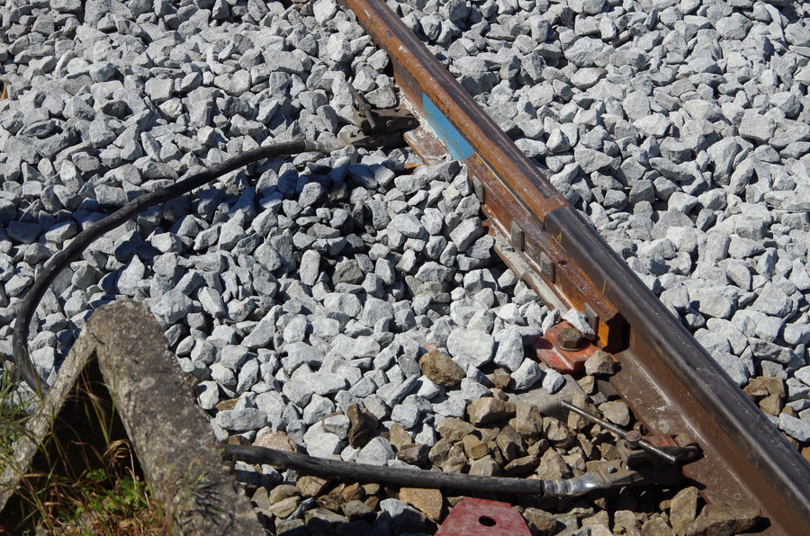mise en place du cable de shuntage provisoire avec 2 pinces de serrage au rail au niveau de la jonction des LRS et des anciennes rails à Jussy le 08-05-2018