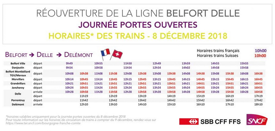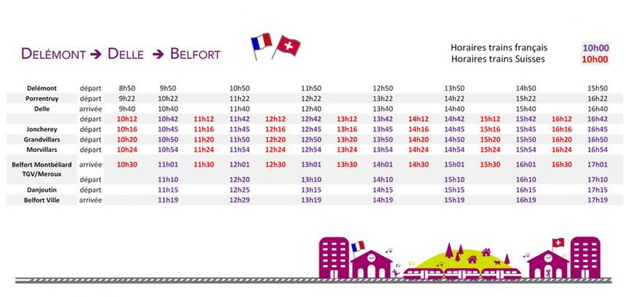 •10 allers-retours quotidiens entre Delle et Belfort-Montbéliard TGV en prolongation des services circulant entre Bienne et Delle ;