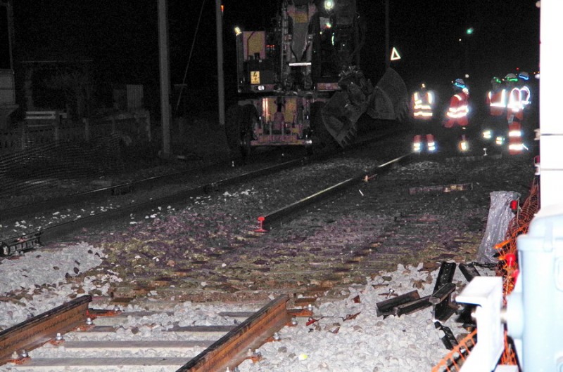 travaux sur les rails du PN 58 à Chauny dans la nuit du 23 au 24-04-2019