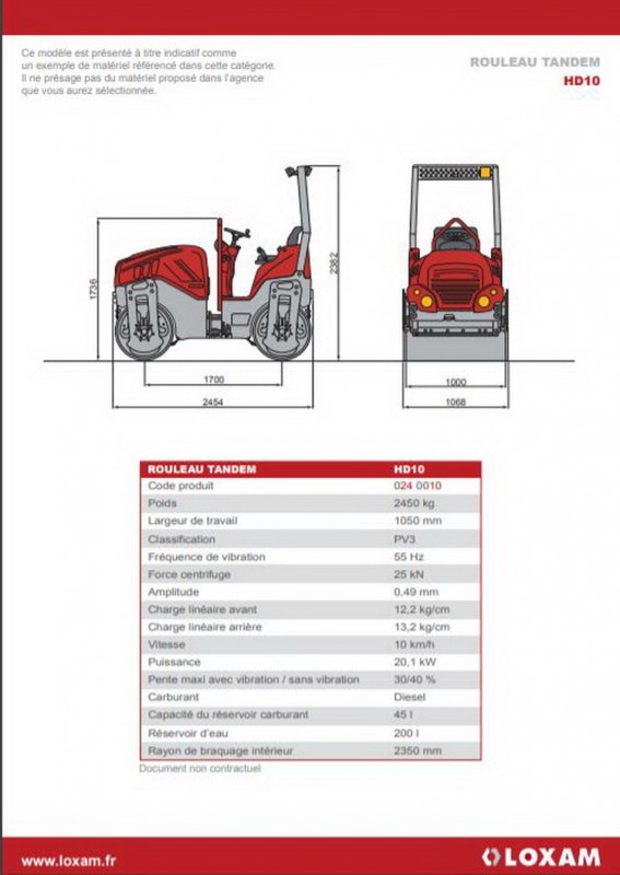 le PDF du Rouleau Tandem LOXAM HD10 de compactage http://www.loxam.info/files/fiches_cara ... 240010.pdf