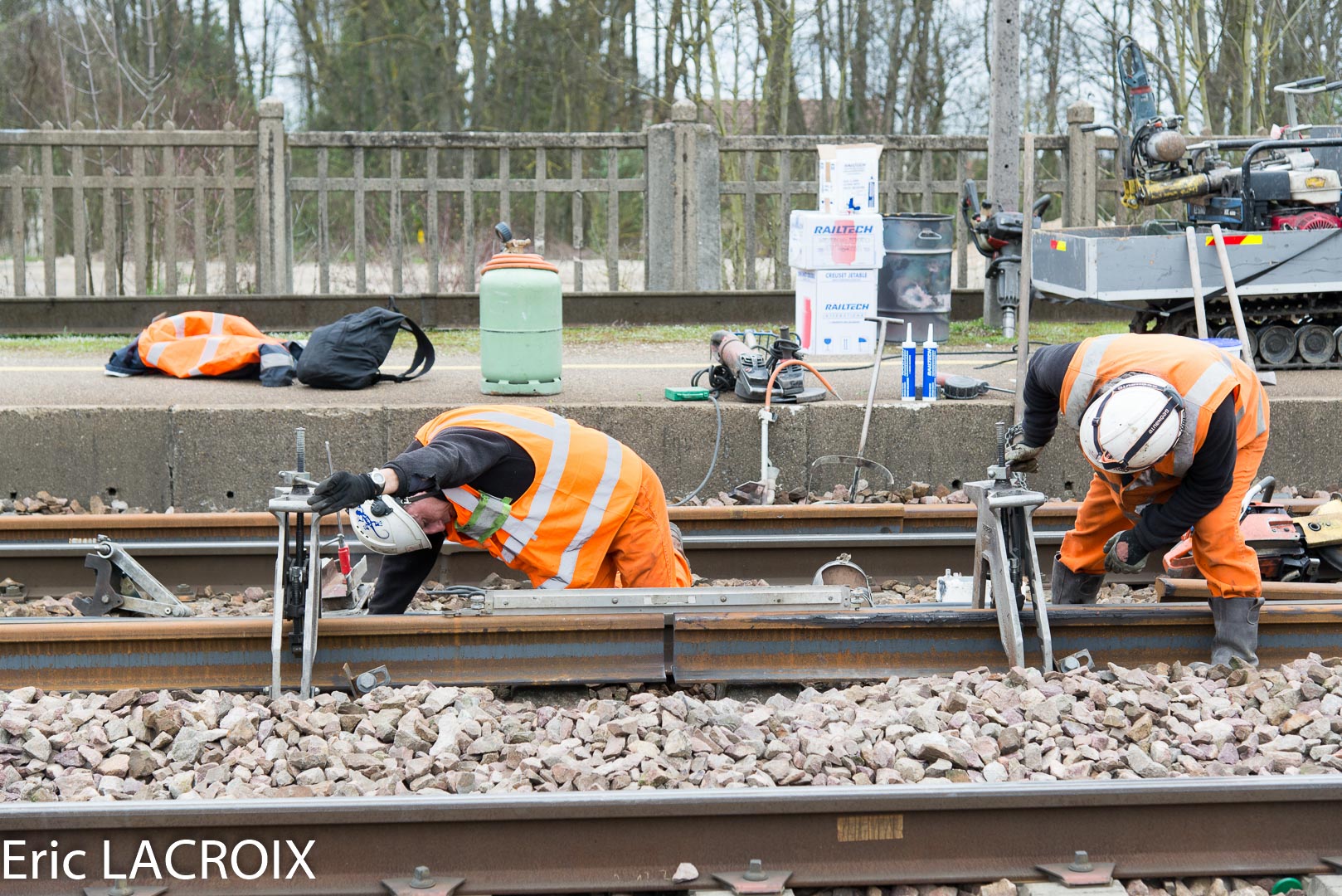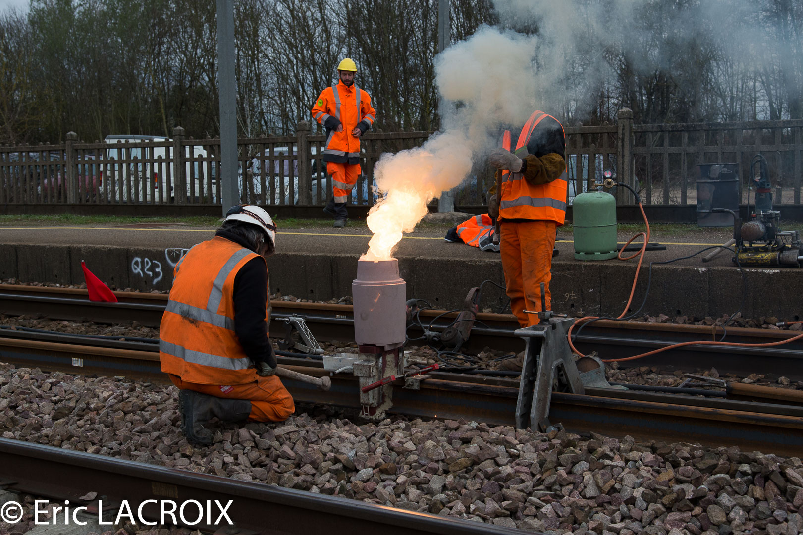 - Soudure aluminothermique des rails par la Société LSF La Soudure Ferroviaire. RVB Villeneuve la Guyard le 20 mars 2017.