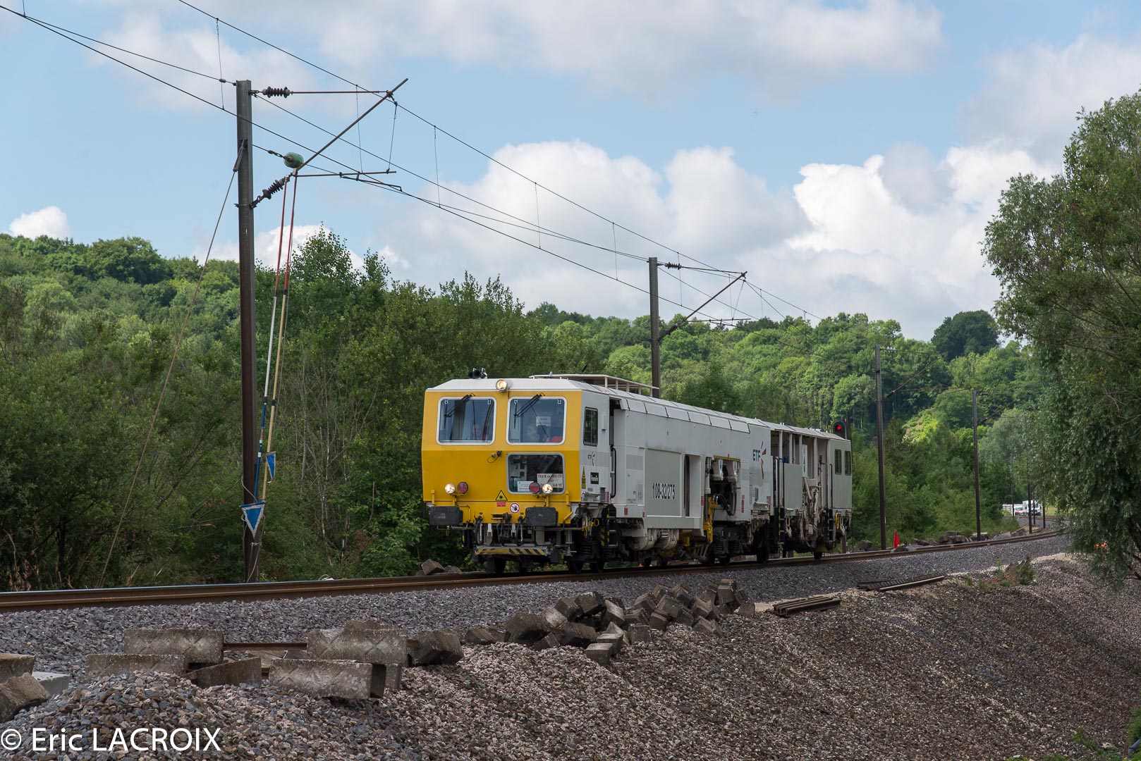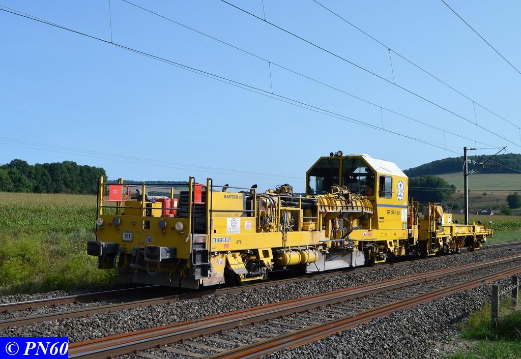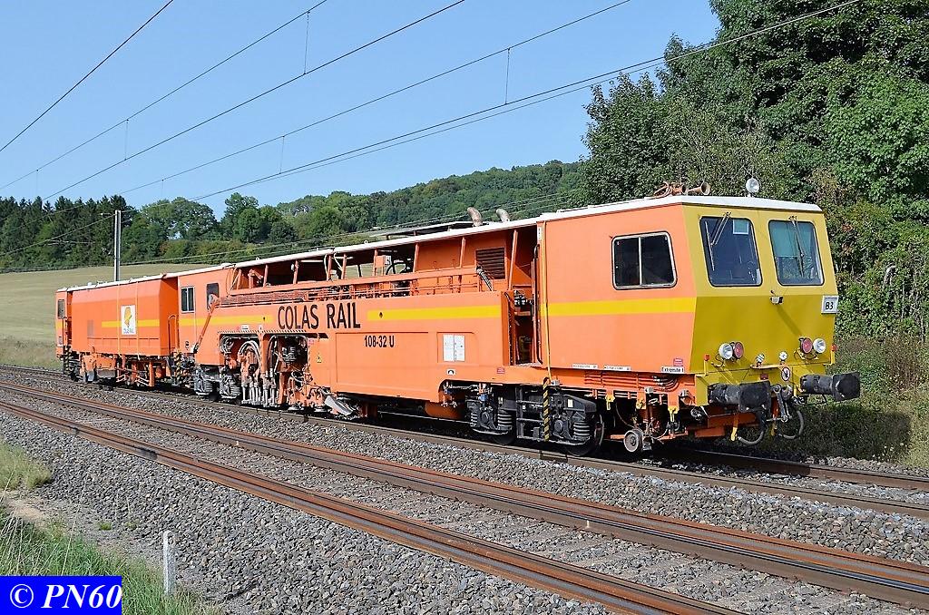 Le 29 août 2017 à Brainville sur Meuse, passage d'une bourreuse de ligne 108-32U COLAS RAIL.