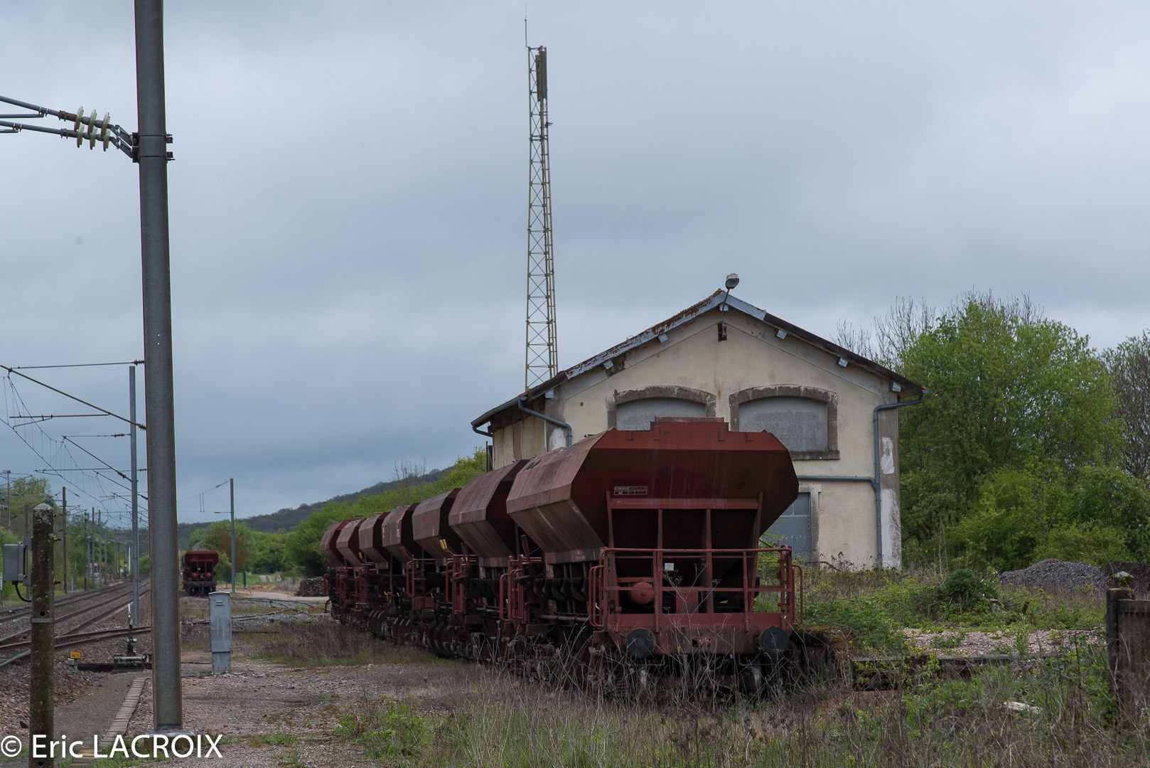 Un autre train de travaux photographié le 29 août 2017 sur la ligne 15 à Brainville sur Meuse. Celui-ci est tracté par une G.1206 DVF (Dijonnaise de Voies Ferrées).