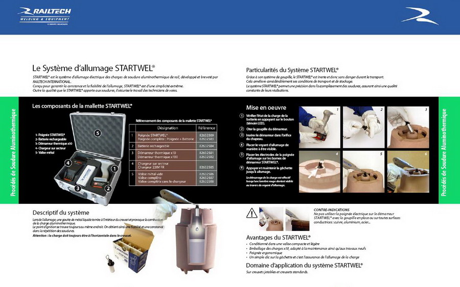 Le système d’allumage STARTWEL®, conçu pour garantir la constance et la fiabilité de l’allumage de la charge disposée dans le creuset, est d’une extrême simplicité d’utilisation et permet de valoriser la technologie de la soudure aluminothermique.