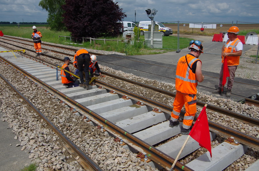 prise de mesure laser avec un chariot monorail Geismar au PK 32 du PN n°14 de Rosières-en-Santerre (80)