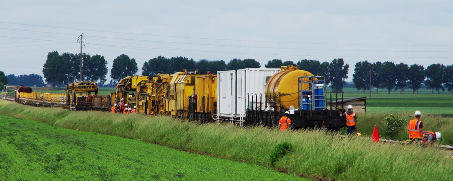 et voilà l'ensemble des engins et des rames de TTX de retour du RVB sur la base de travaux de la gare de Chaulnes