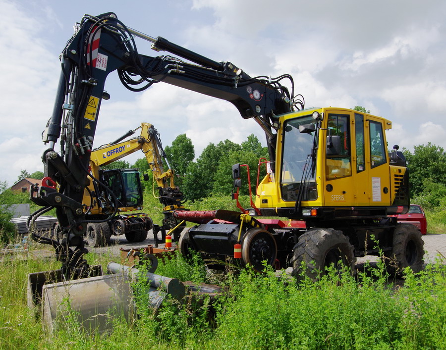 avec la présence de deux Pelles Rail route pour le RVB et d'un véhicule d'Offroy