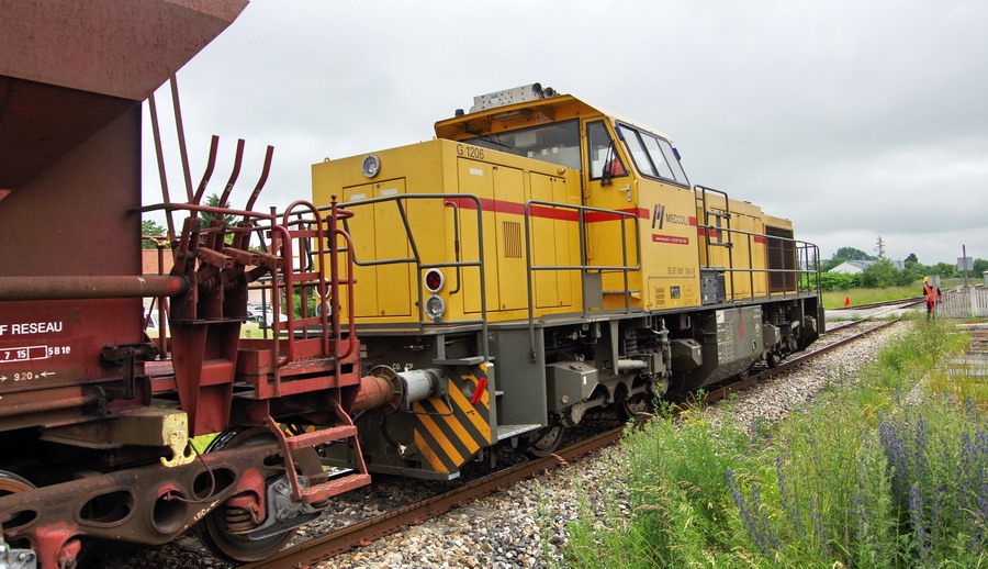 et aussi la présence de la rame de ramassage des coupons de rail de 18 m avec le train n°T1T2 et la E 4027 - 92 87 0 004 027-4 F-VFLI en location