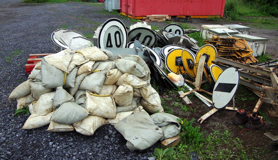du bric-à-brac pour la signalisation du chantier sur la base de travaux de la gare de Chaulnes le 01 juin 2018