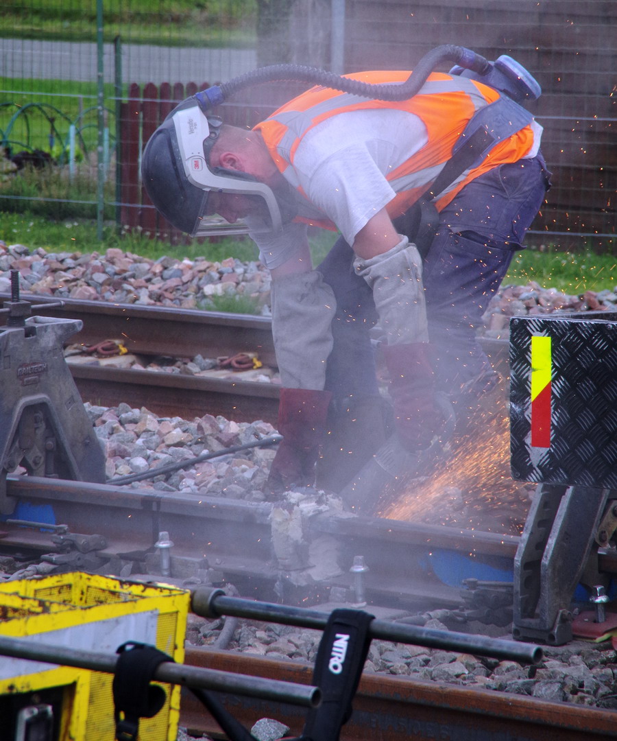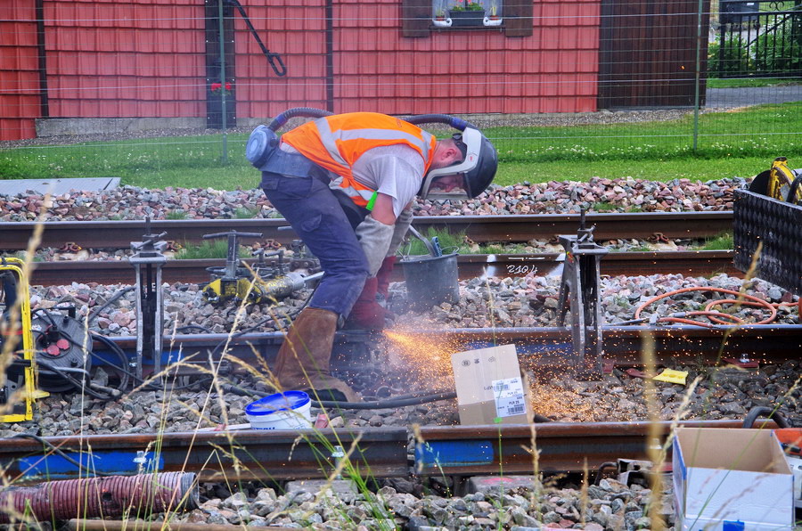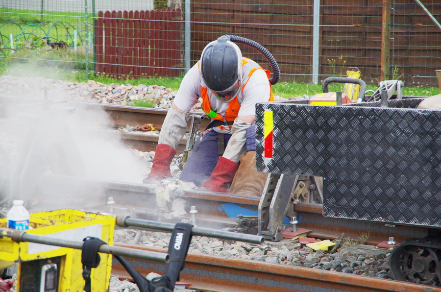 fin de séance de soudure aluminothermique sur les LRS en gare de Marcelcave (80) PK 21,100 le 15-06-2018