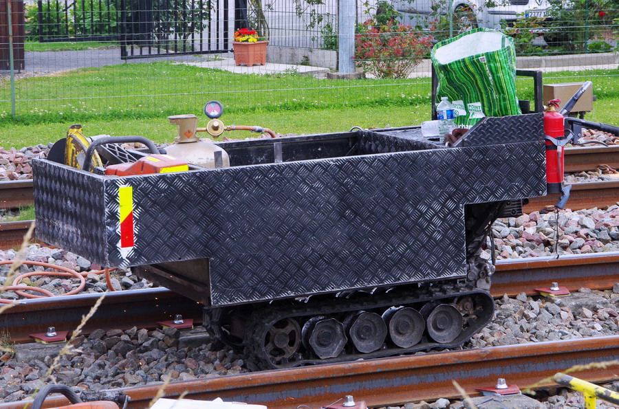 Brouette à chenilles avec moteur thermique.Mini dumper en gare de Marcelcave (80) PK 21,100 le 15-06-2018