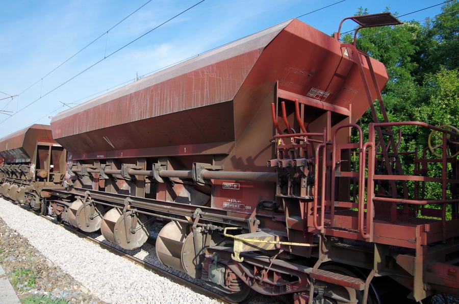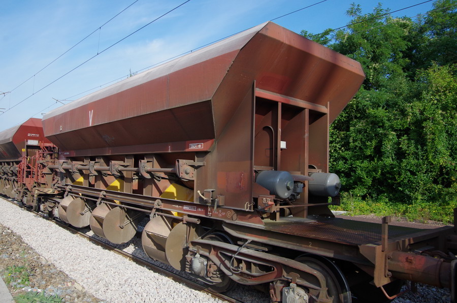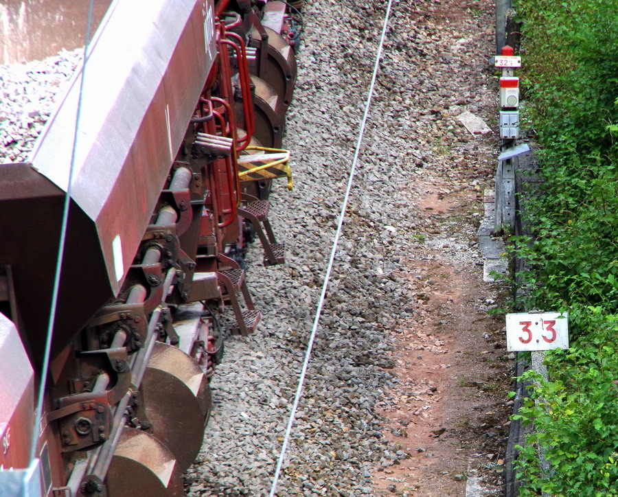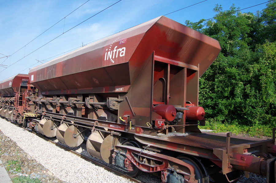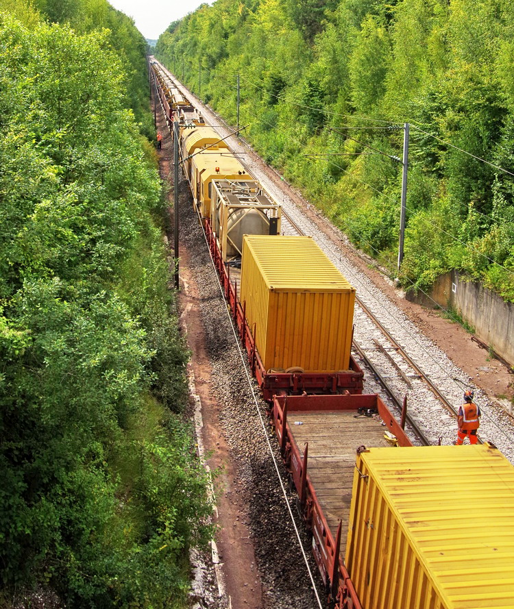 nous sommes maintenant au PK 33 avec le passage de la Dégarnisseuse C75 GCF Roma et la rame de Trémies pour le ballast