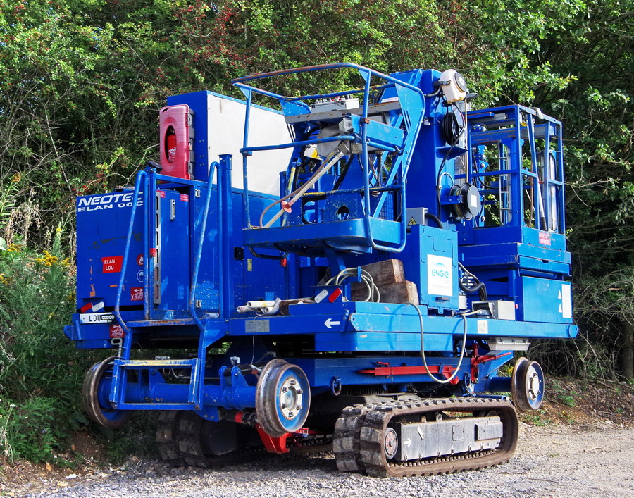 présence en gare de Poix de Picardie (80) PK 30,286 de la nacelle caténaires ELAN 00C-INE - ELA.14.030.74 - Engie - "Mathilde"