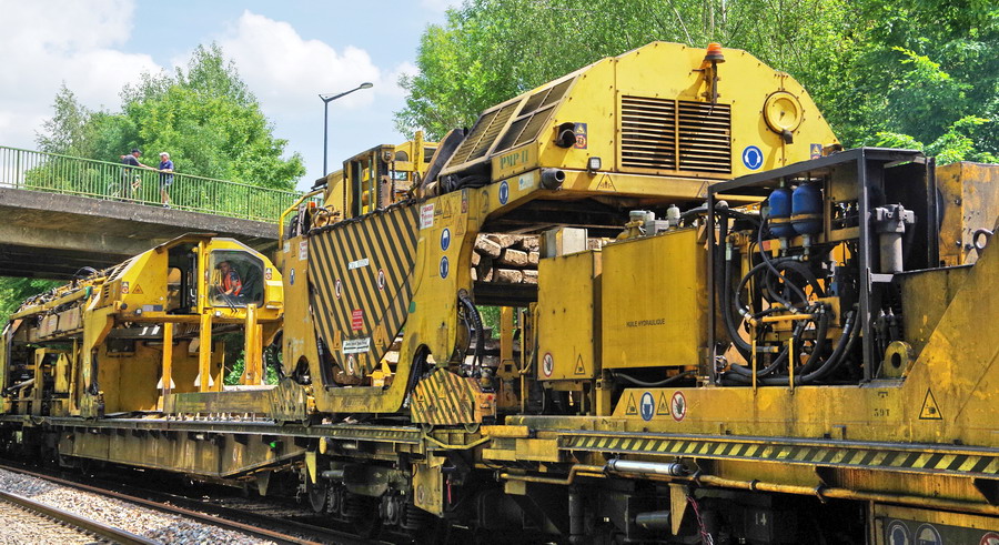 la rame de la coupe et de pose du P95 - 99 87 9 311 503-6 - ETF - "Addax" à Villers-Bretonneux le 15-06-2018 Présence de la Pelle Rail route Geismar KGT V n°4716 - Meccoli A