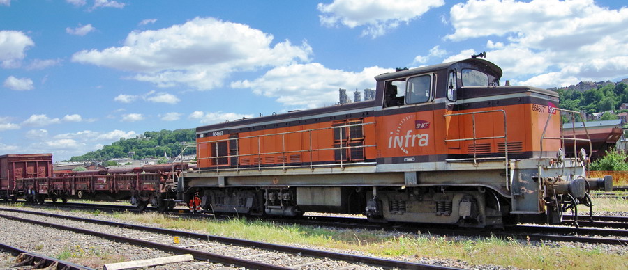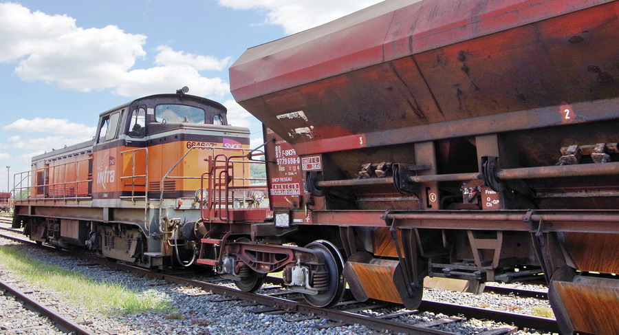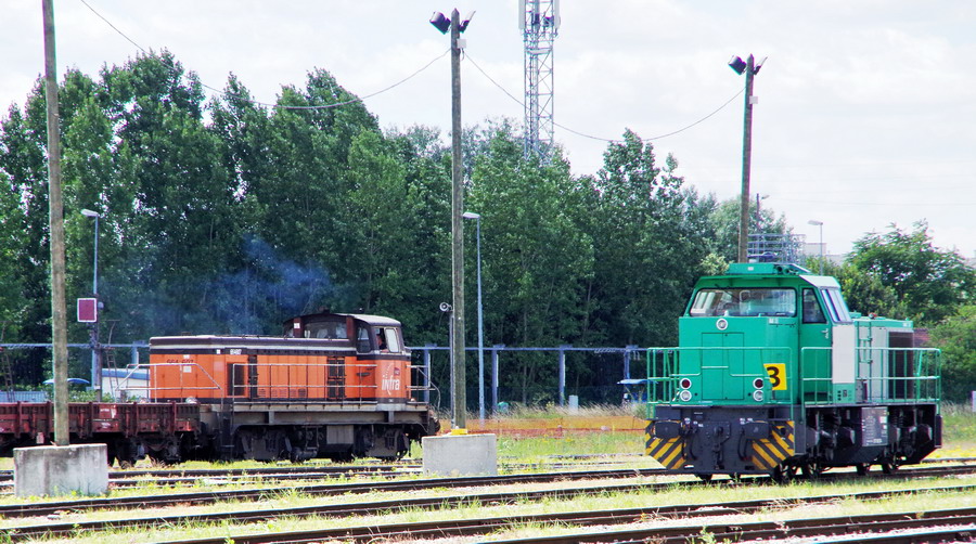 les machines pour la manoeuvre des rames de TTX sur la base de travaux de la gare de Laon le 22-06-2018