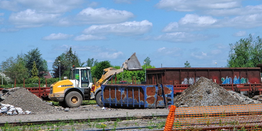 un chargeur en location sur le site de travaux de la gare de Laon le 22-06-2018