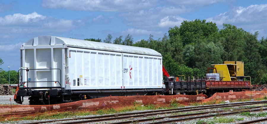 le wagon Couvert - 33 87 275 0 341-3 - ETF sur le site de travaux de la gare de Laon le 22-06-2018
