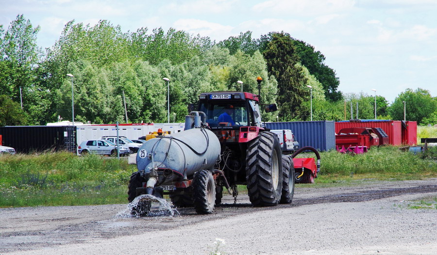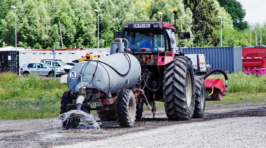 l'arroseuse municipale pour la poussière sur le site de travaux de la gare de Laon le 22-06-2018