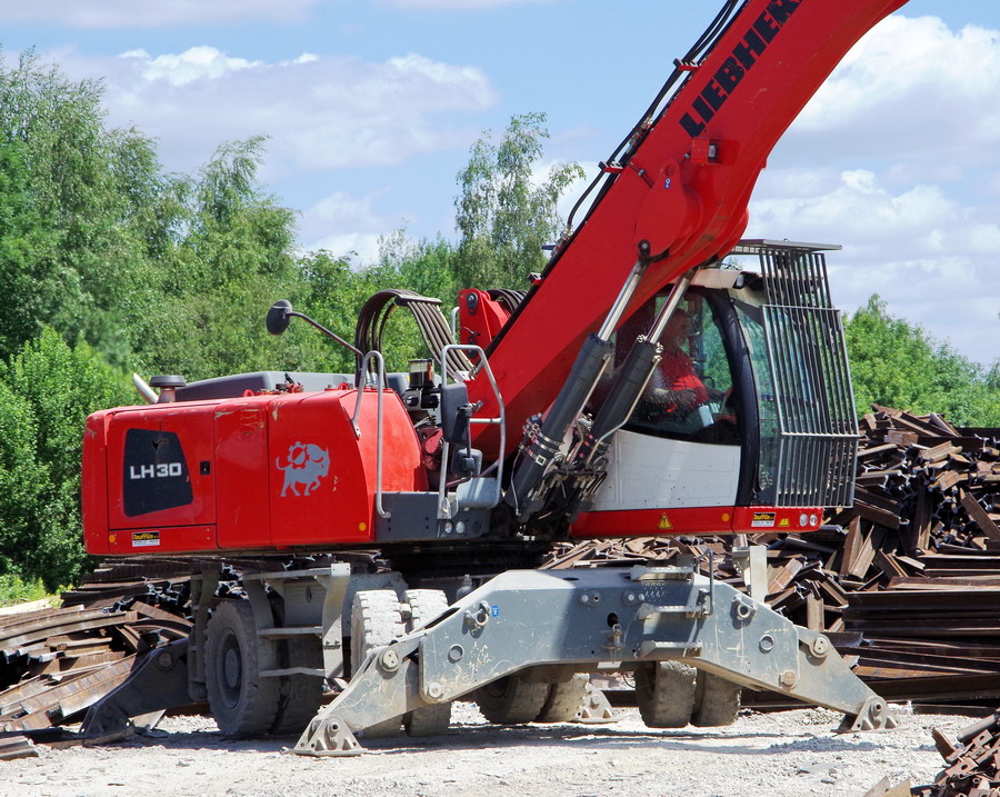 LIEBHERR LH 30 Industry Litronic n°WLHZ1200KZK083106 de Derichebourg Environnement sur le site de travaux de la gare de Laon le 22-06-2018