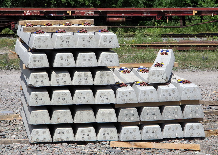 les nouvelles traverses mono bloc pour le RVB sur la base de travaux SNCF RESEAU de la gare de Laon le 22-06-2018