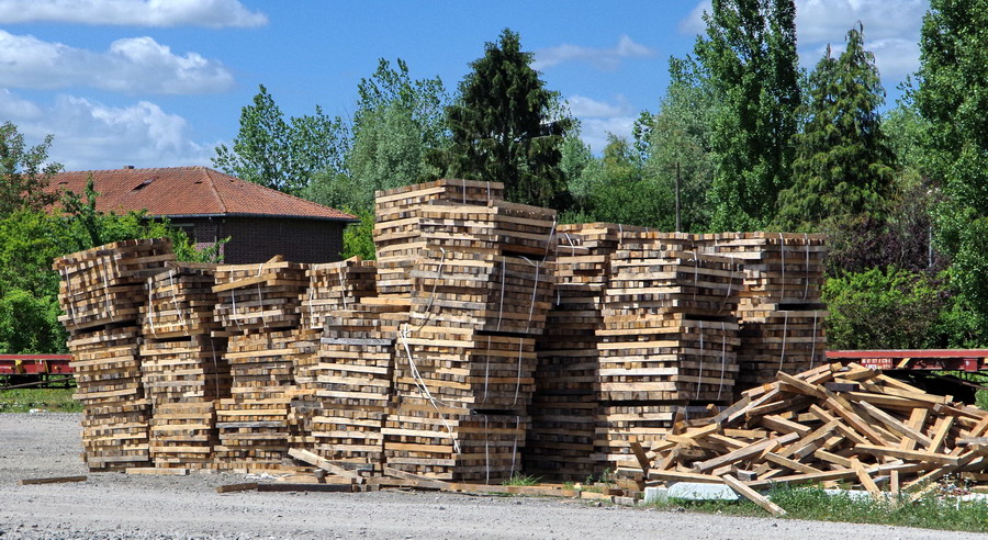 les déchets de bois du RVB Amiens Laon pour le recyclage sur la base de travaux SNCF RESEAU de la gare de Laon le 22-06-2018