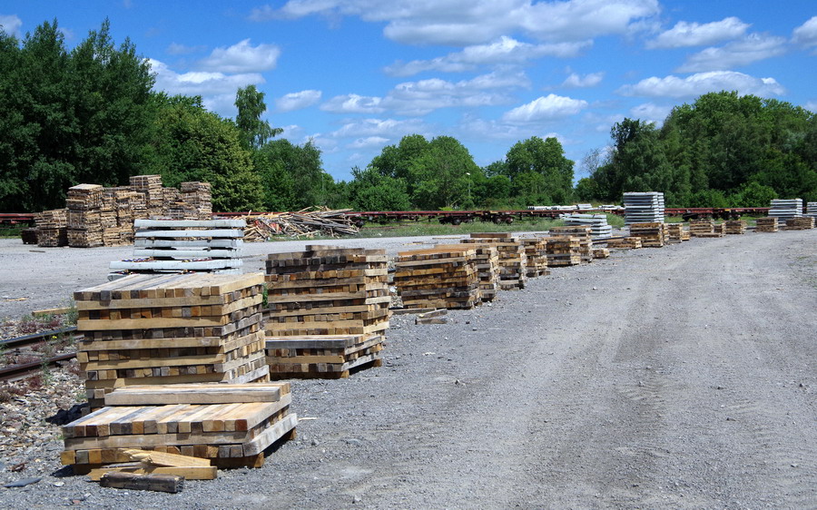 stockage du bois pour le recyclage sur la base de travaux SNCF RESEAU de la gare de Laon le 22-06-2018