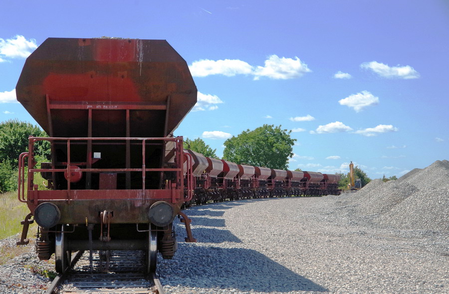 chargeur pour le chargement d'une rame de trémies D12 avec le ballast pour le RVB sur la base de travaux