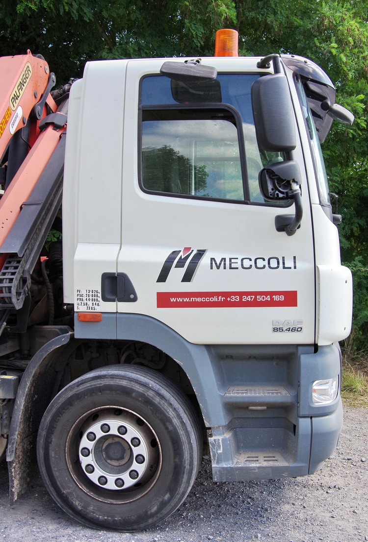 déchargement d'un camion DAF 85-460 CF Meccolli de coupons de rails au pont de Bray à Jussy (02) le 25-06-2018