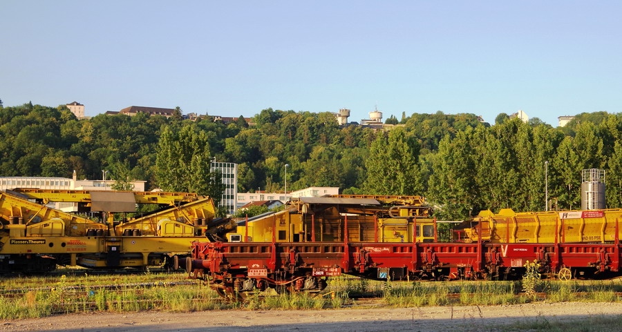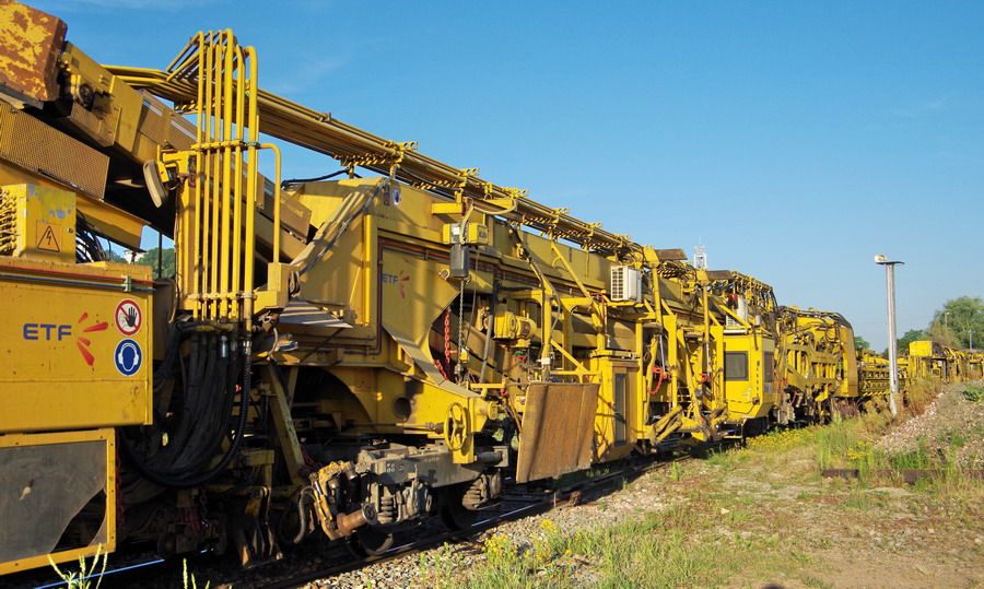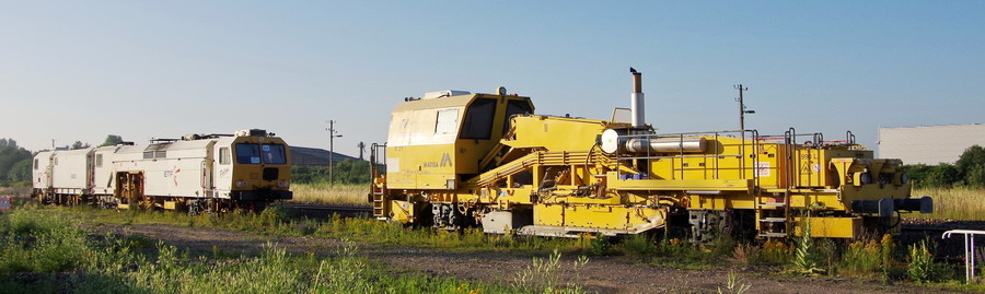 Régaleuse RGT 45 2B Framafer n° 317 de 2002 - 99 87 9 125 508-1 Meccoli (R2S) et Bourreuse de ligne de type 109FRP Dynamic Framafer n°2562 de 1992 - 99 87 9 123 502-6 Meccoli (B3) pour le RVB sur la base de travaux de la gare de Chaulnes le 27-06-2018