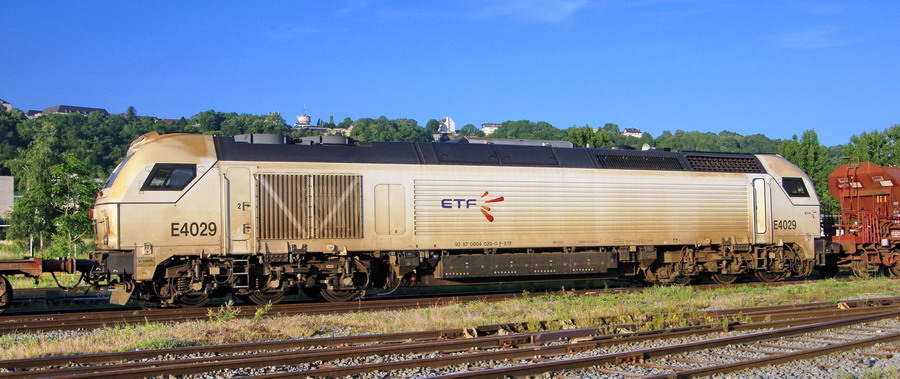 la E4029 - 92 87 0 004 029-0 F-ETF sur une rame sur le départ pour RVB sur la base de travaux de la gare de Laon le 26-06-2018