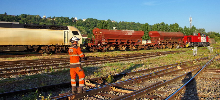 manœuvre d'une rame sur la base de travaux de la gare de Laon le 26-06-2018