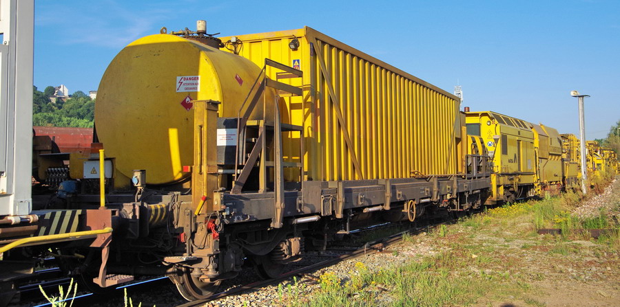 Bourreuse de ligne de type 109-32 S Framafer n°2818 de 1997 - 99 87 9 121 507-7 - Meccoli (B2) pour le RVB sur la base de travaux de la gare de Chaulnes le 27-06-2018