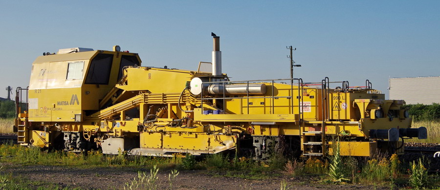 Régaleuse R21 Matisa n°475 de 2012 - 99 87 9 125 526-3 Meccoli pour le RVB sur la base de travaux de la gare de Chaulnes le 27-06-2018
