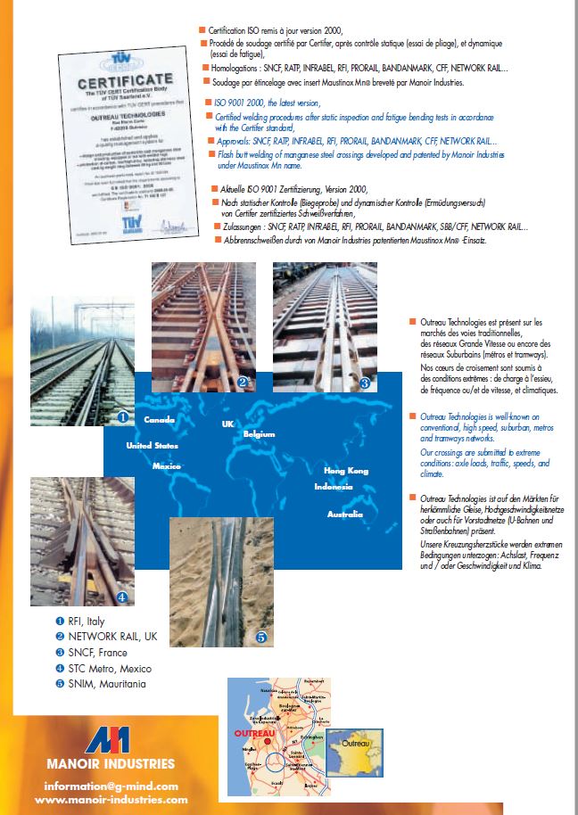 • Ecartement de voie 1 435 mm (autres sur demande)