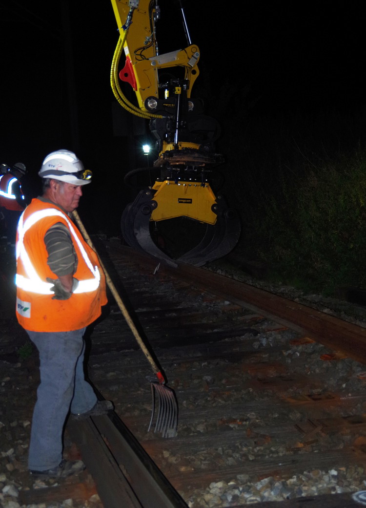 (le poste n'a plus l'assurance que l'aiguille colle dans la bonne direction et ne peut donc ouvrir les signaux)On soude le tout (à raison de 45' par soudure, x3 soudures, on est dans les 2h), là aussi avec une précision chirurgicale : une soudure c'est un point faible dans la voie, le moindre défaut peut s'accentuer très vite et provoquer des dommages.
