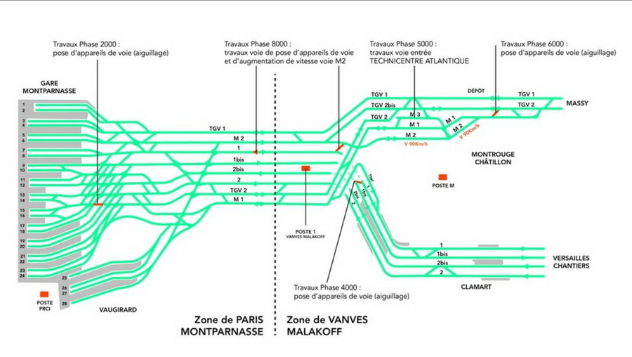 Les travaux qui sont actuellement en cours sur le secteur de Montparnasse ont d’ailleurs pour but d’augmenter le nombre d’aiguillage de la gare pour faciliter la gestion du trafic qui sera accentué avec l’ouverture des nouvelles voies TGV BPL Bretagne Pays de Loire et SEA, Sud Europe Atlantique.