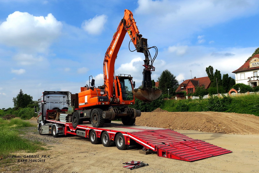 la Pelle Rail route DOOSAN DX 160 W Rail Way n°DWBEUR06H800555102 de 2009 de Delcourt Ferroviaire parc n°4 gare de Barr le 25-06-2018