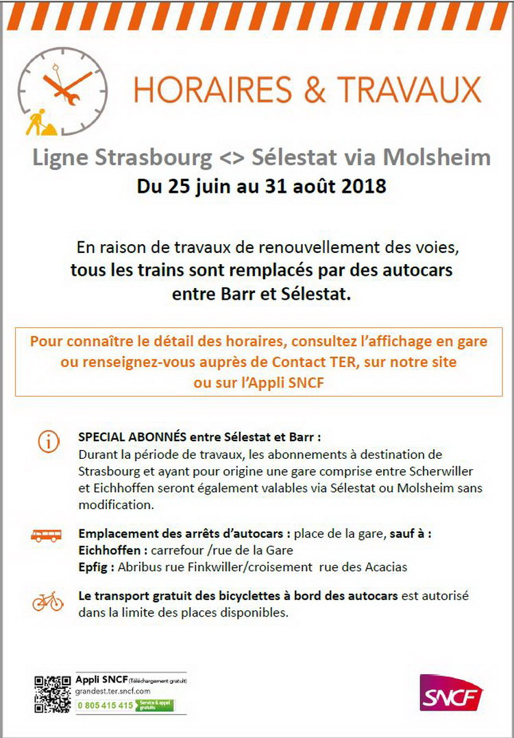 Info pour la fermeture de la ligne entre Barr et Sélestat à partir du 25 juin 2018