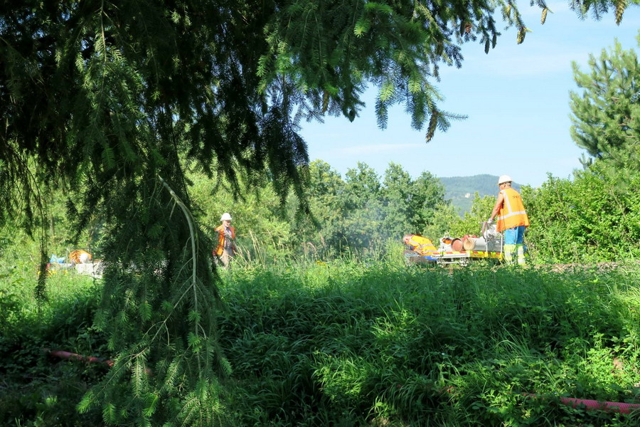 positionnement des tronçons de rails tout au long du chantier dans le secteur de Dambach-la-Ville