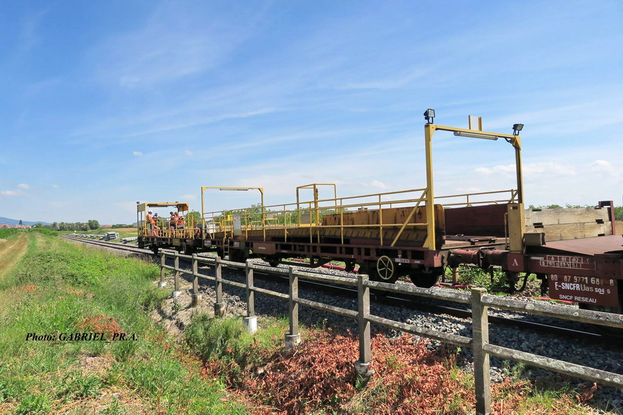 Train n°F2 pour l'approvisionnement des LRS en provenance de Sélestat avec la rame de déchargement n° 28 - SNCF RESEAU ex SNCF-PN