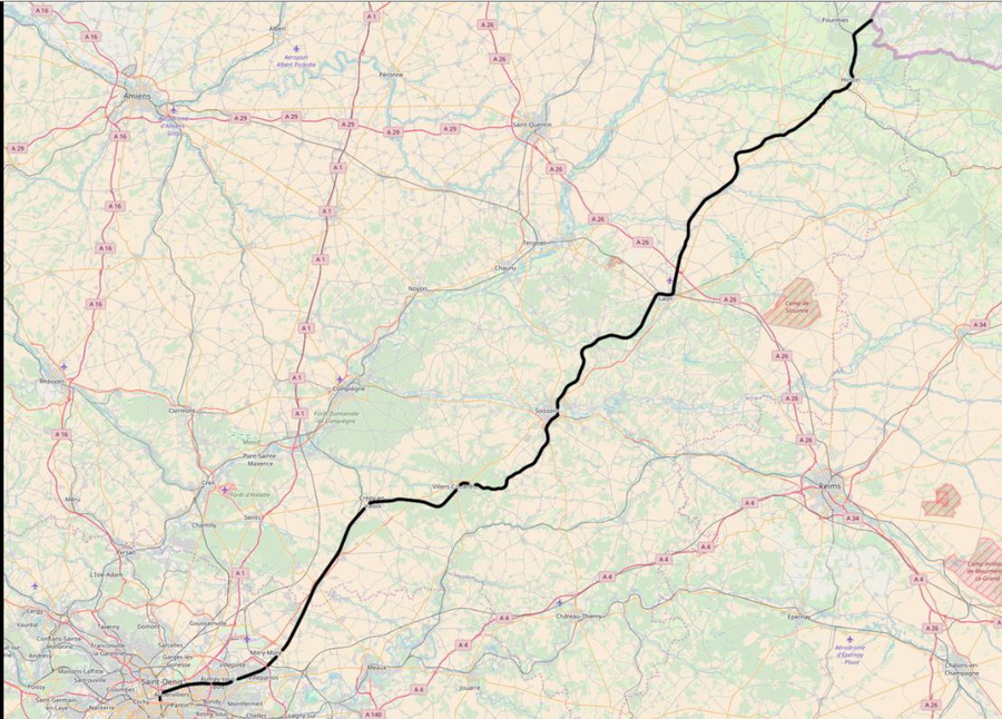 Laon (PK 140,0) Ã Vervins (PK 178,9) 100 Km/h