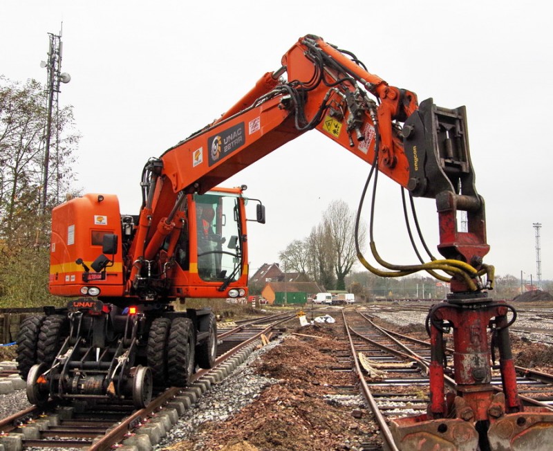 Unac 22 TRR UP2 - EY200116 pour la mise en place des nouvelles traverses bibloc neuves sur le site en travaux de Longueau le 26-11-2018