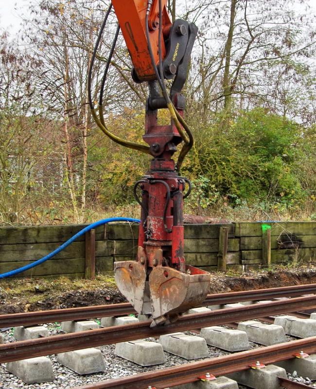mise en place des nouvelles traverses bibloc neuves sur le site en travaux de Longueau le 26-11-2018
